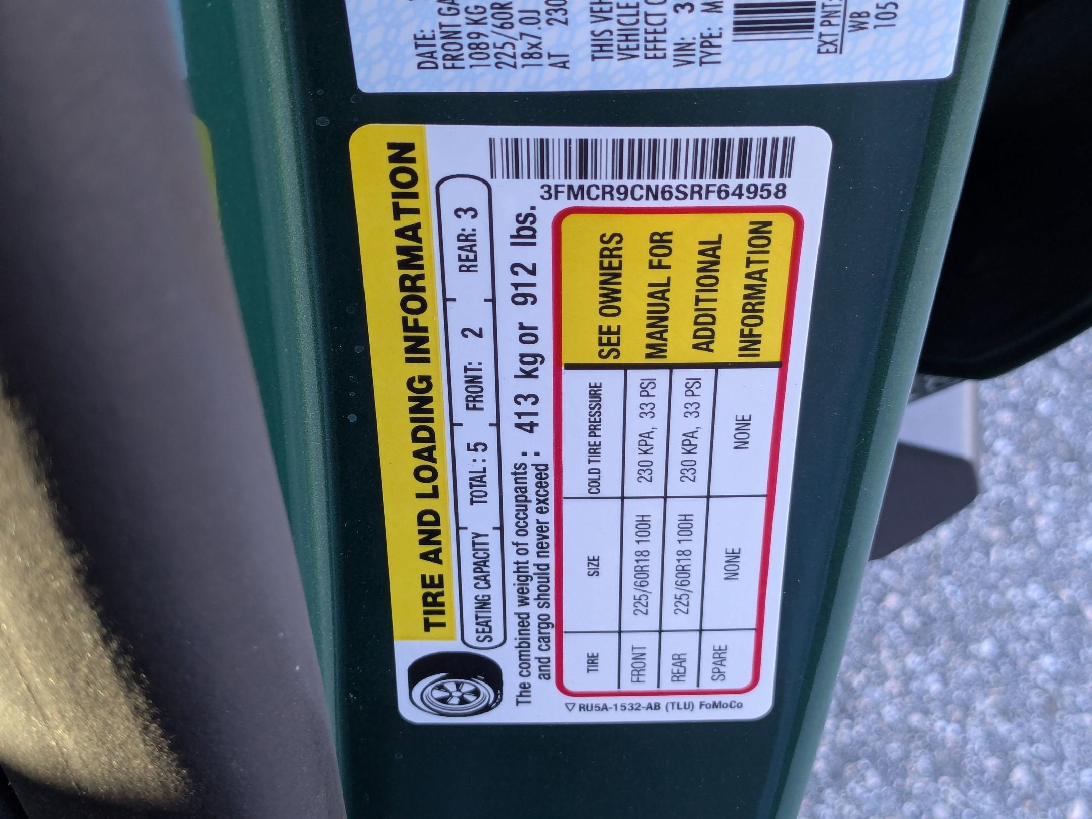 - Front Tire Size: P225/60HR18