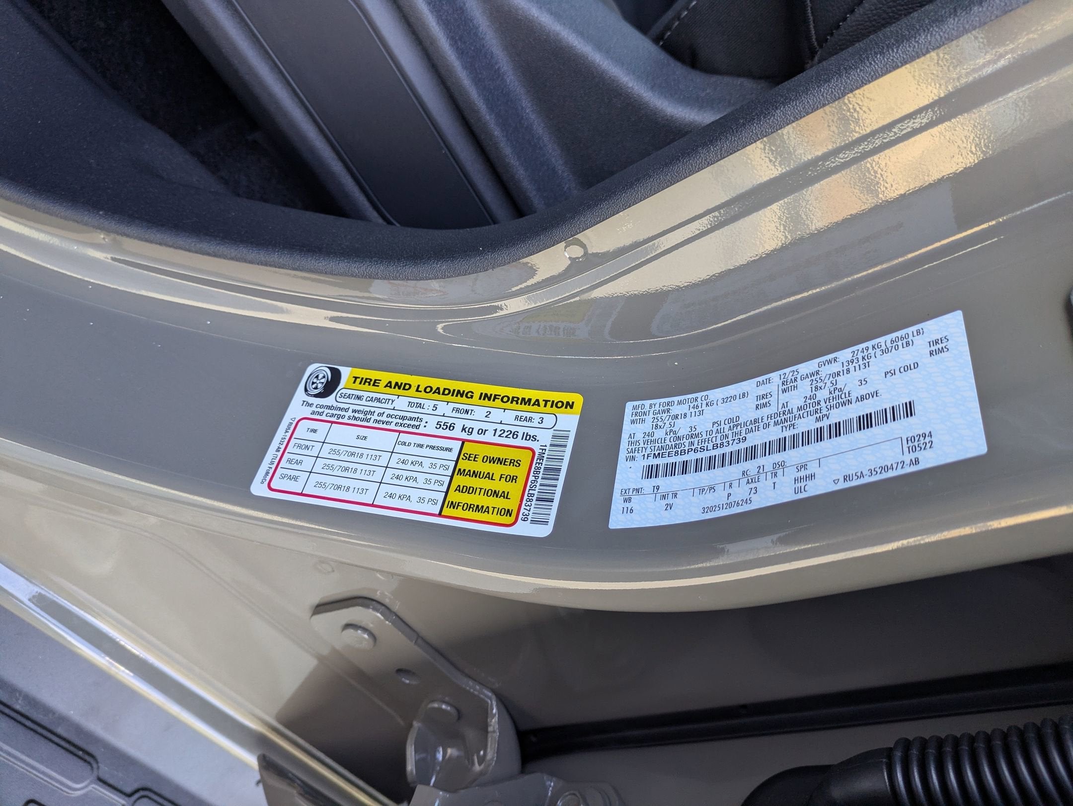 - Tires: P255/70R18 A/T -inc: full size spare tire w/TPMS