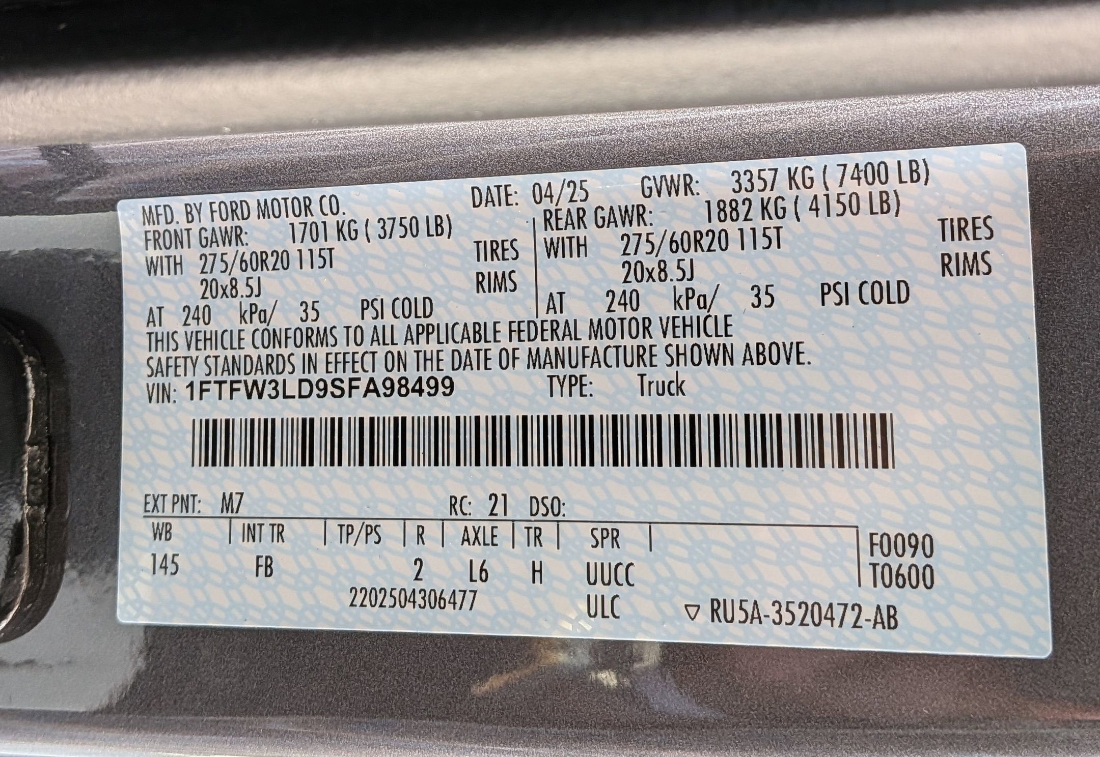1FTFW3LD9SFA98499