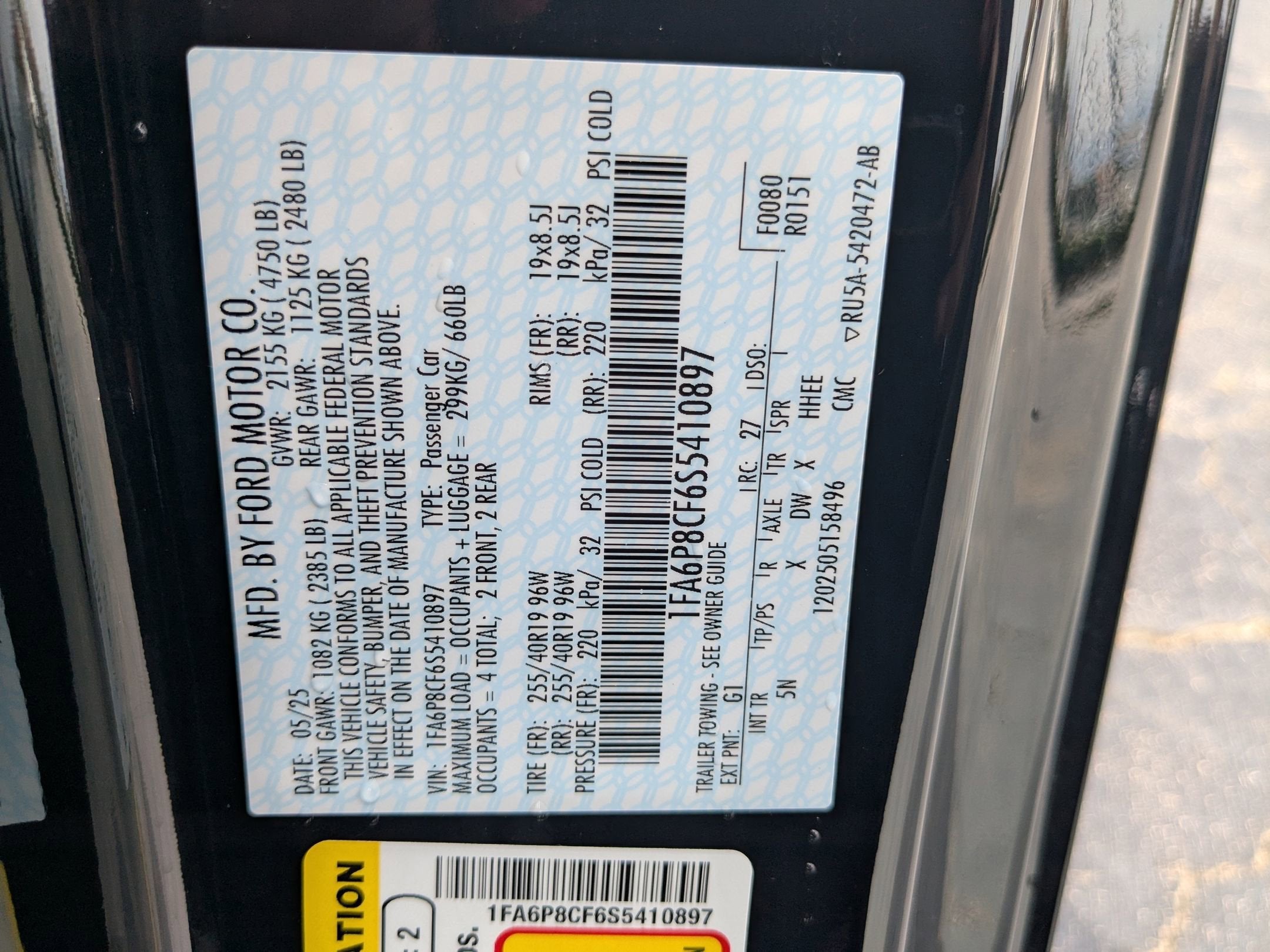 - Vehicle Name: Ford Mustang