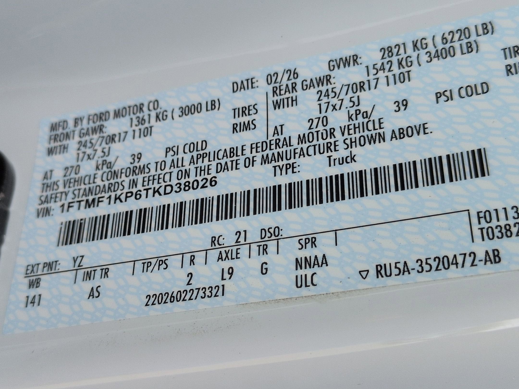 - Gross Vehicle Weight Rating Cap (lbs): 6220