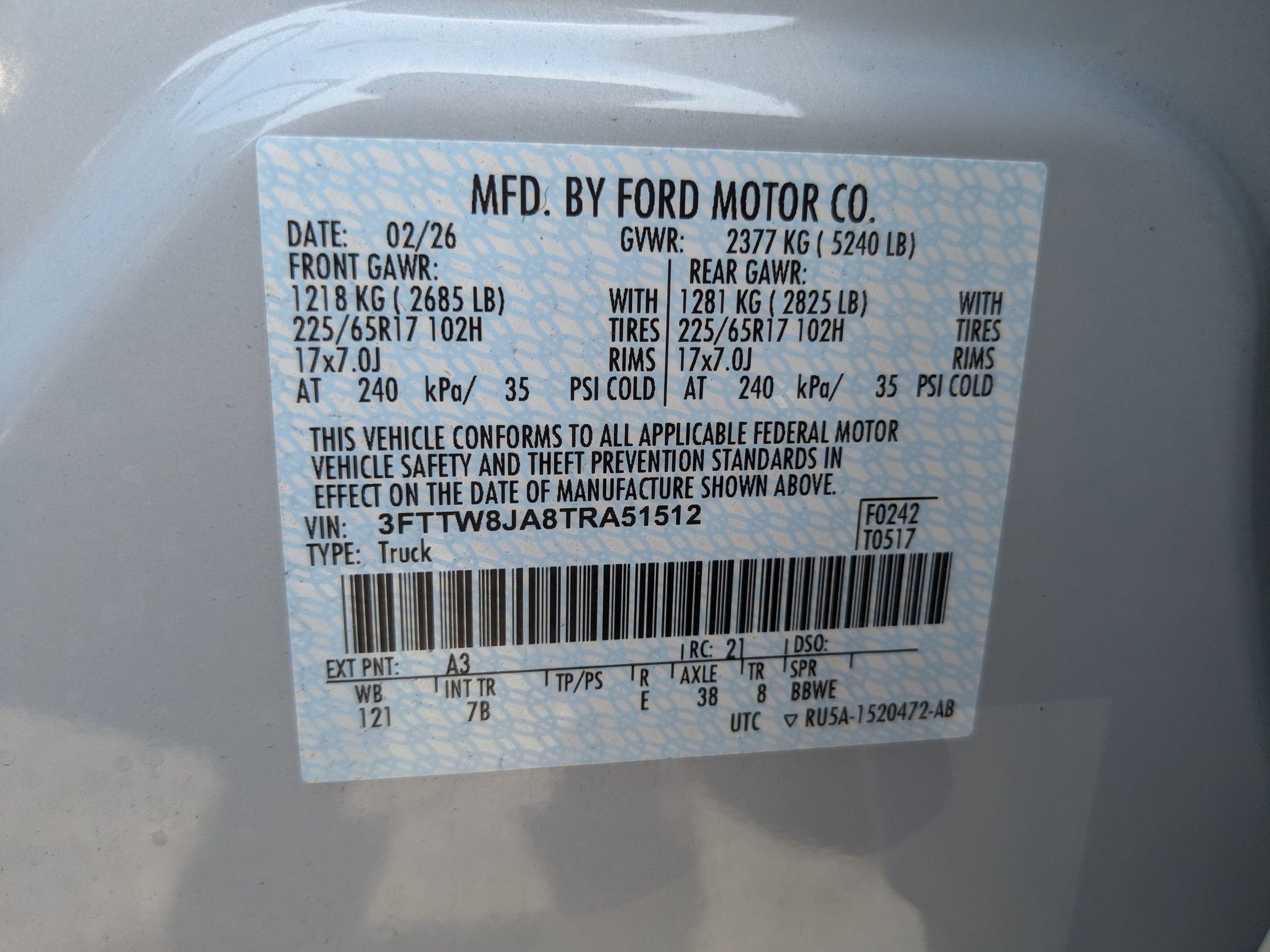 - Gross Vehicle Weight Rating Cap (lbs): 5240