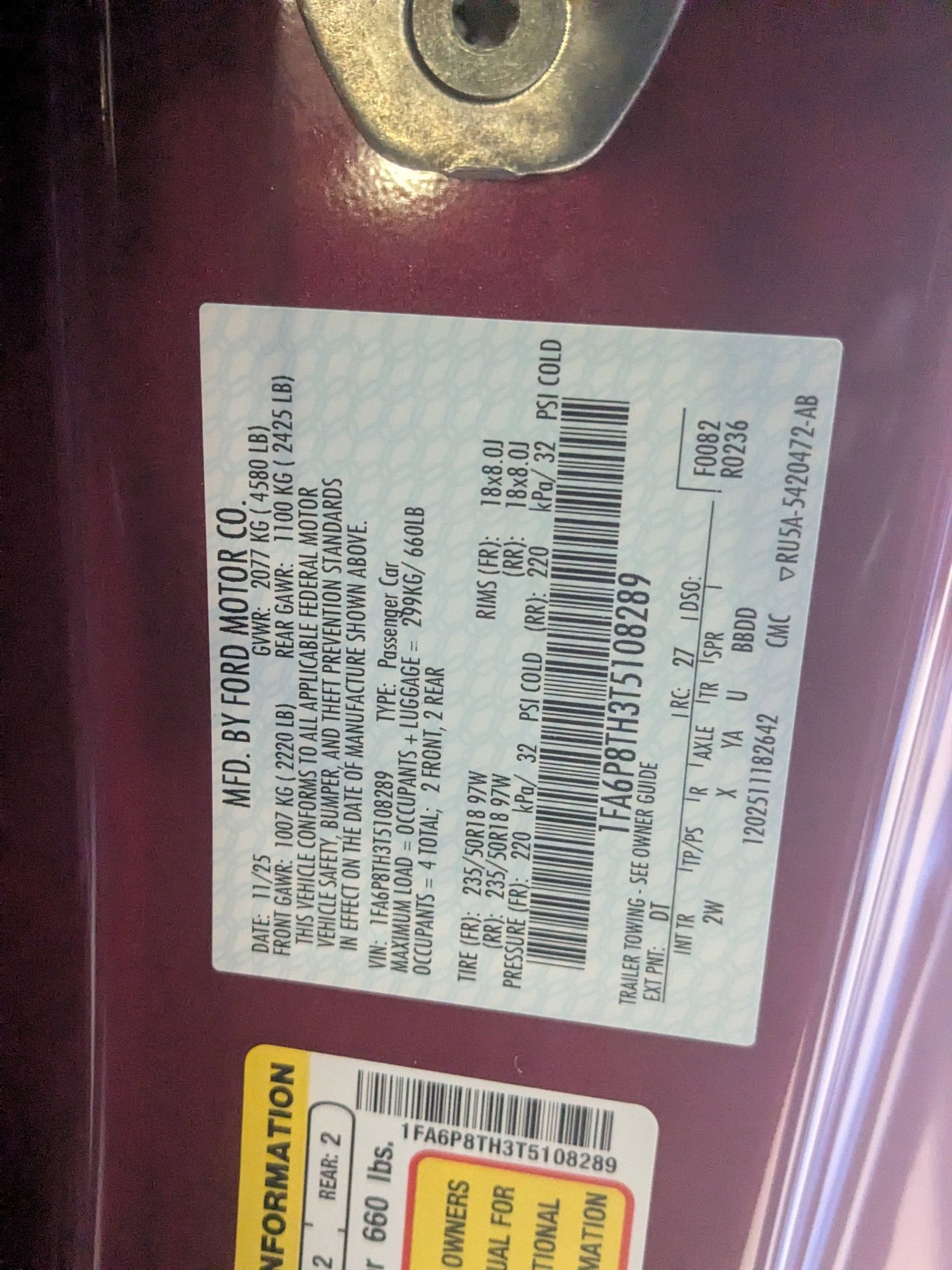 - Vehicle Name: Ford Mustang
